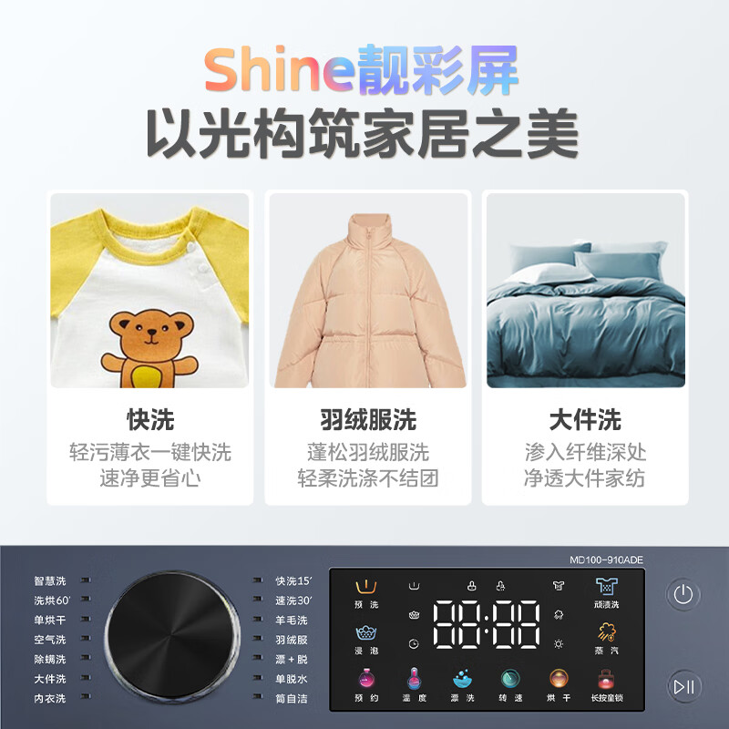 美的(Midea)滚筒洗衣机全自动家用 MD100-910ADE 10公斤洗烘一体 轻净直驱系列 直驱变频 银离子杀菌 智能烘干价格:2799.00元!