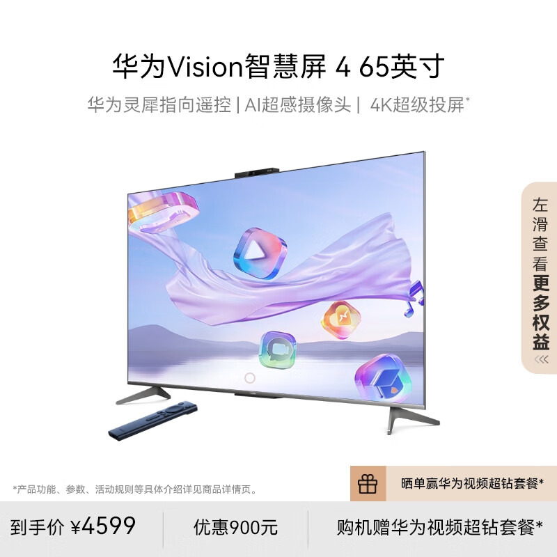华为Vision智慧屏 4 65英寸 灵犀指向遥控 240Hz高刷 4K超高清液晶智能游戏电视机排行前十HD6XQINA价格:4599.00元!