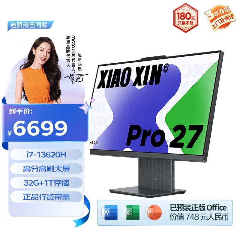 联想(Lenovo)小新Pro 27一体台式电脑27英寸2.5K高刷屏(酷睿13代i7-13620H 32G DDR5内存 1TB SSD )深空价格:6699.00元!