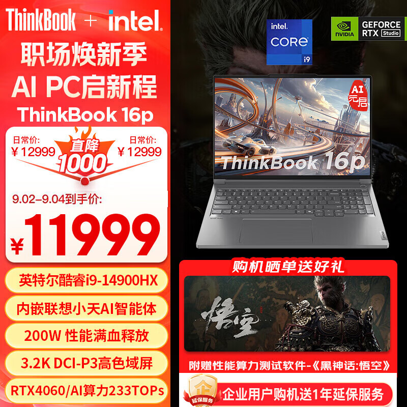 ThinkPad联想AI元启ThinkBook 16p轻薄笔记本电脑 14代英特尔酷睿i9-14900HX 16英寸32G1T RTX4060 3.2K价格:11999.00元!