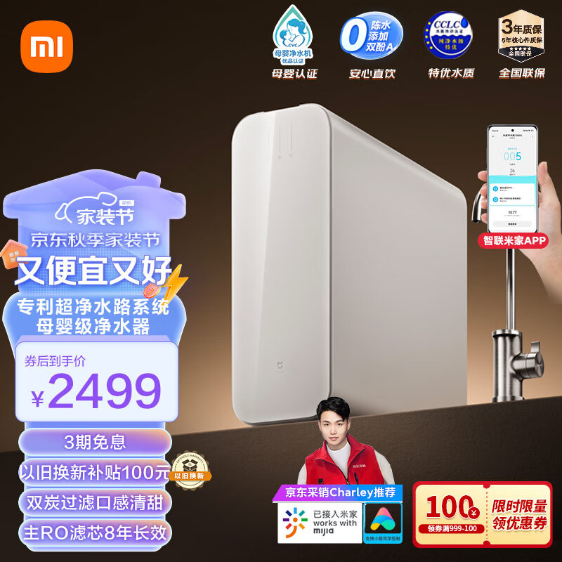 米家【24年旗舰款】小米1200G Pro 双核 家用净水器 无罐厨下式直饮机 8年RO滤芯 5:1纯废水比 3.2L/分价格:2599.00元!