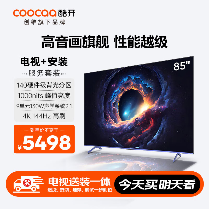 酷开 【送装一体版】创维Max85 85英寸电视 百级分区 1000nits峰值亮度 144Hz高刷智能电视机85P60 P价格:5498.00元!