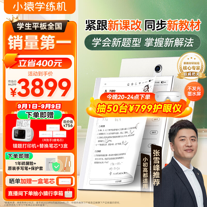 小猿学练机 旗舰款 10.3英寸墨水屏 2024年新课标教材同步 学生平板 AI学习机 智能练习本S2 开学礼物价格:4299.00元!